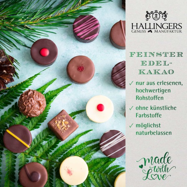 Pralinen Adventskalender ohne Alkohol - 24 handgemachte Premium Schoko Pralinen aus Edelkako - Süßigkeiten Geschenk Familie Kinder Erwachsene - Weihnachtskalender 2025 (300g, Advents-Karton). Täglicher Genuss zum Verschenken oder Selbstverwöhnen: Hallinge
