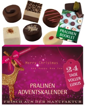 • 24 feinste sowie handgemachte Pralinen, verpackt im Adventskarton mit Motiv \"It´s Christmas\"