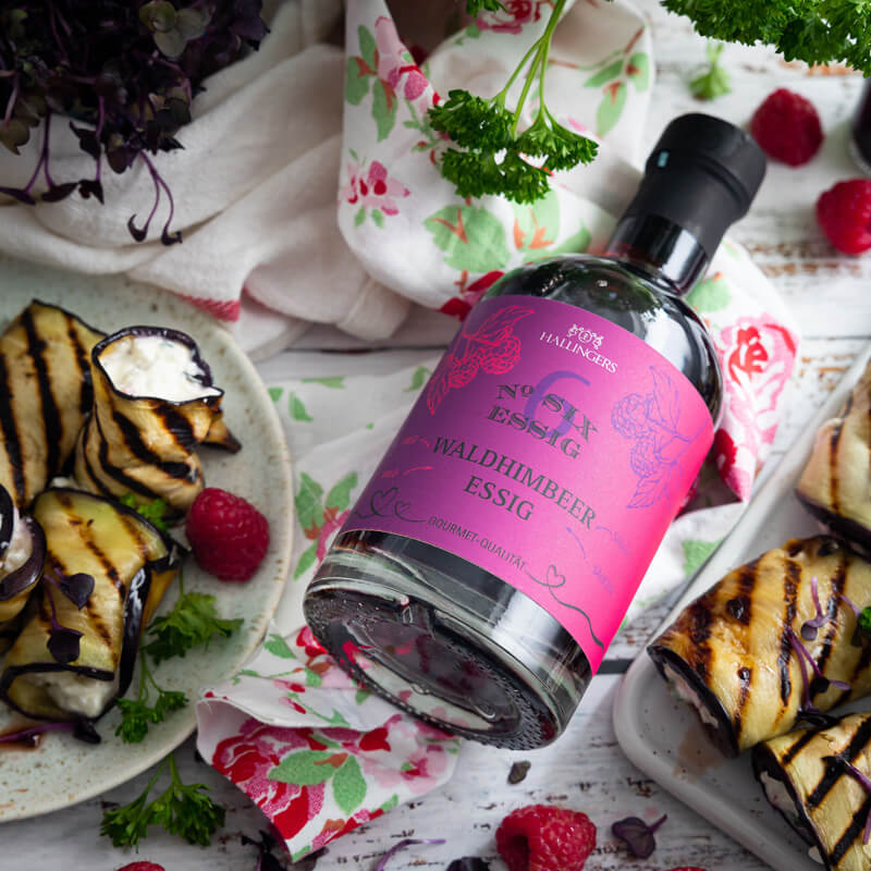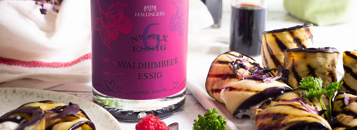 Verfeinere die lila Auberginen mit unserem Waldhimbeer-Essig.
