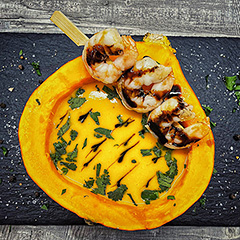 Fernöstliche KürbissuppeFernöstliche Kürbissuppe mit gebratenen Garnelenn.